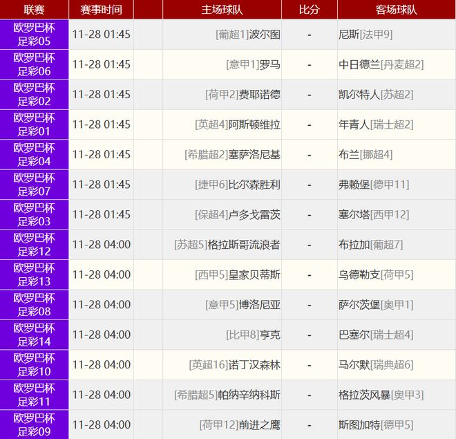 其他赛事比分: